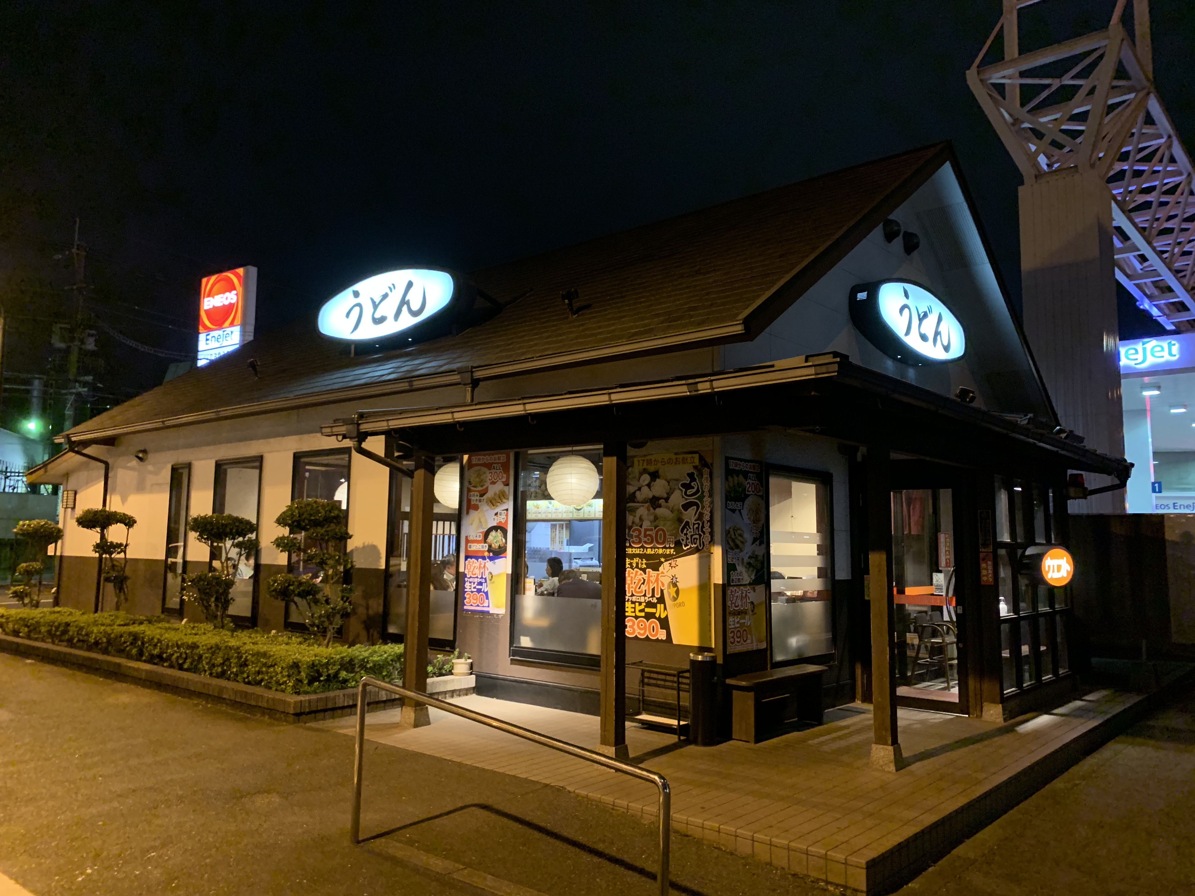 こちらは空港近く、都市高速下の通り沿いにあるうどんウエストで24時間営業、かつ夜はうどん居酒屋をされているんですよね~。