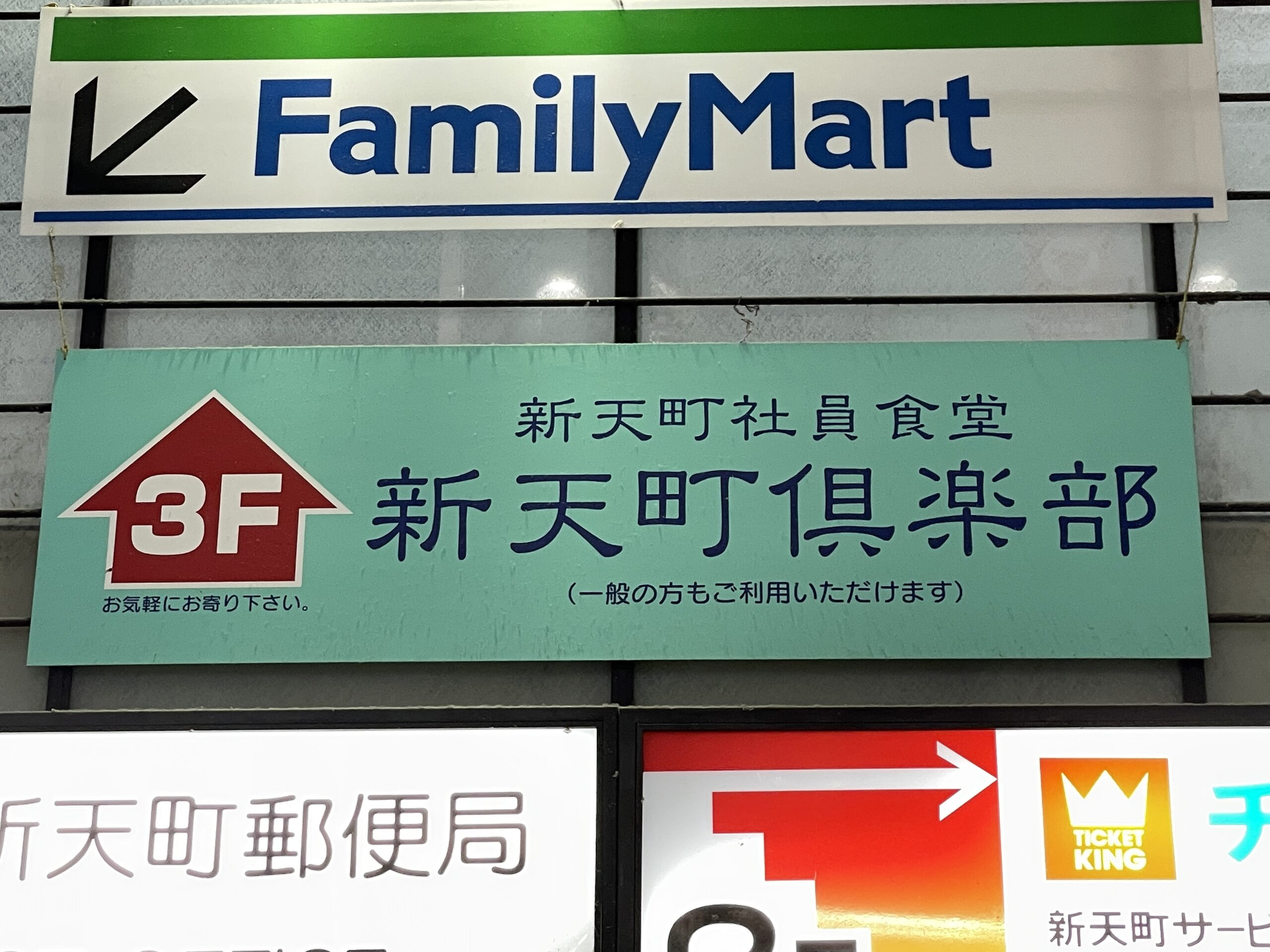 新天町商店街のサザン通り沿いにあるファミリーマート裏側の階段を登って、三階にある新天町社員食堂になります。