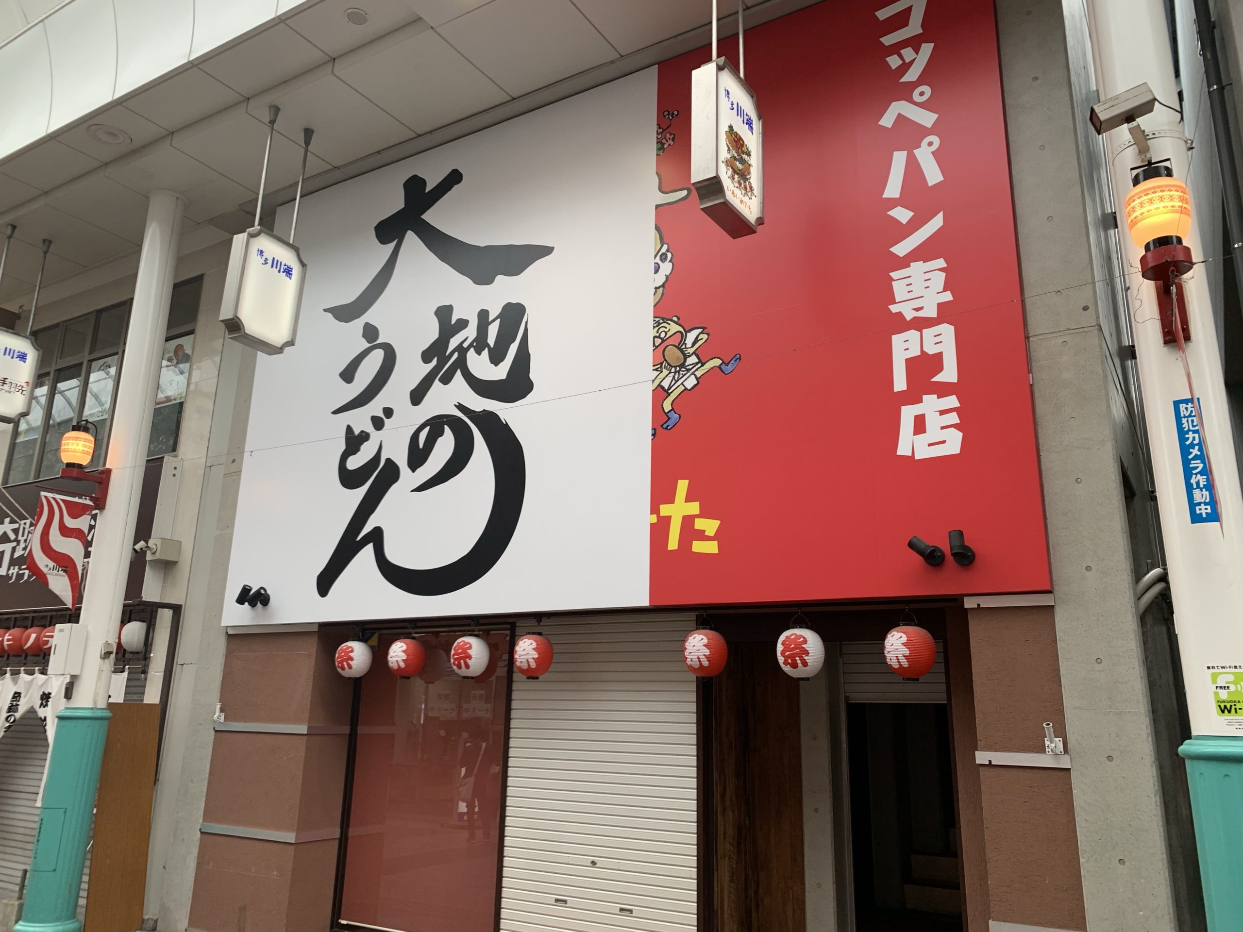川端商店街の以前コッペパン専門店があったところの1階に、2月1日に大地のうどんがオープン!