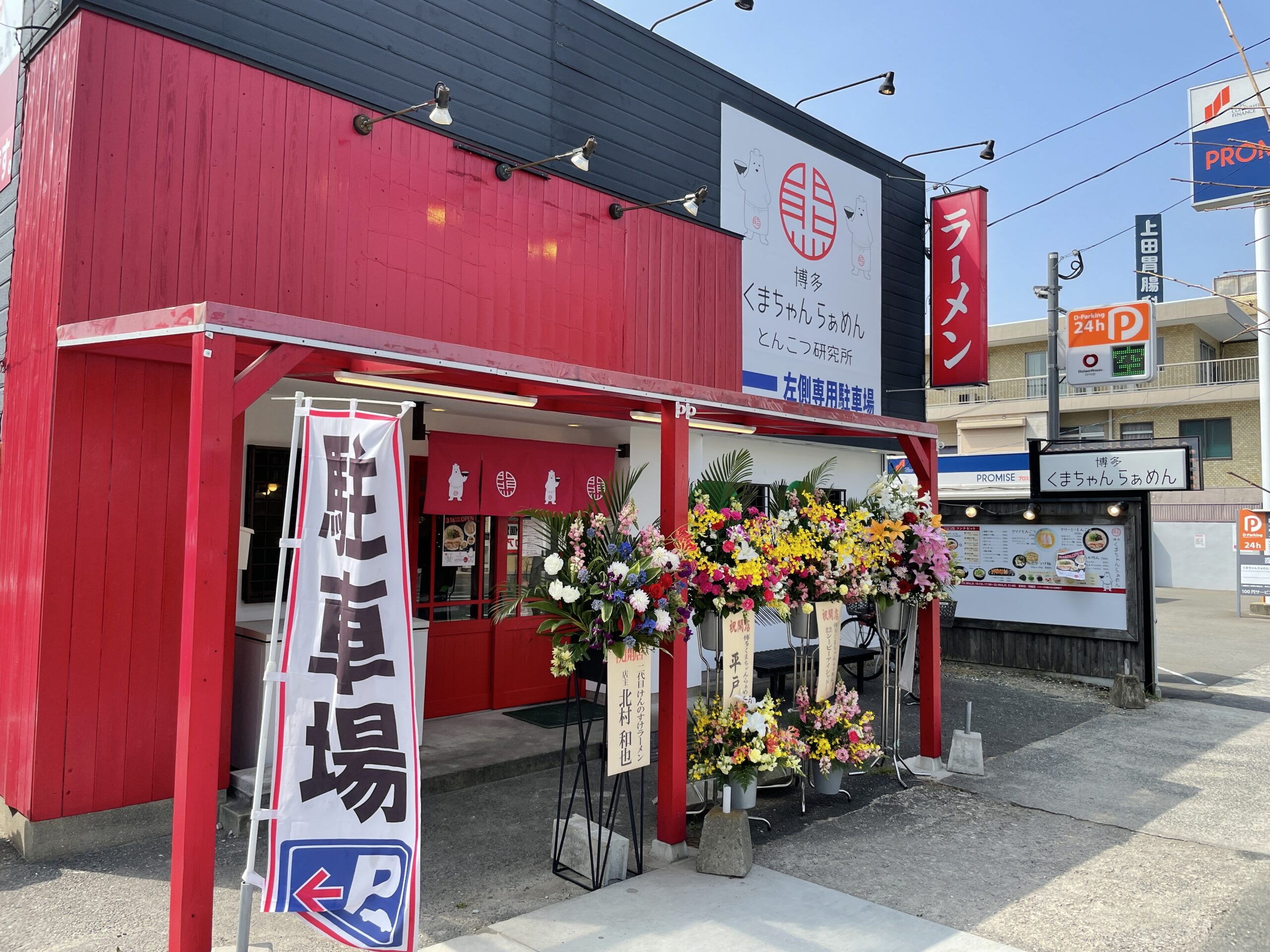 3月16日にセカンドブランドの麺処一修をリニューアルしてオープンされた、博多くまちゃんらぁめん とんこつ研究所 春日店に伺ってきました。