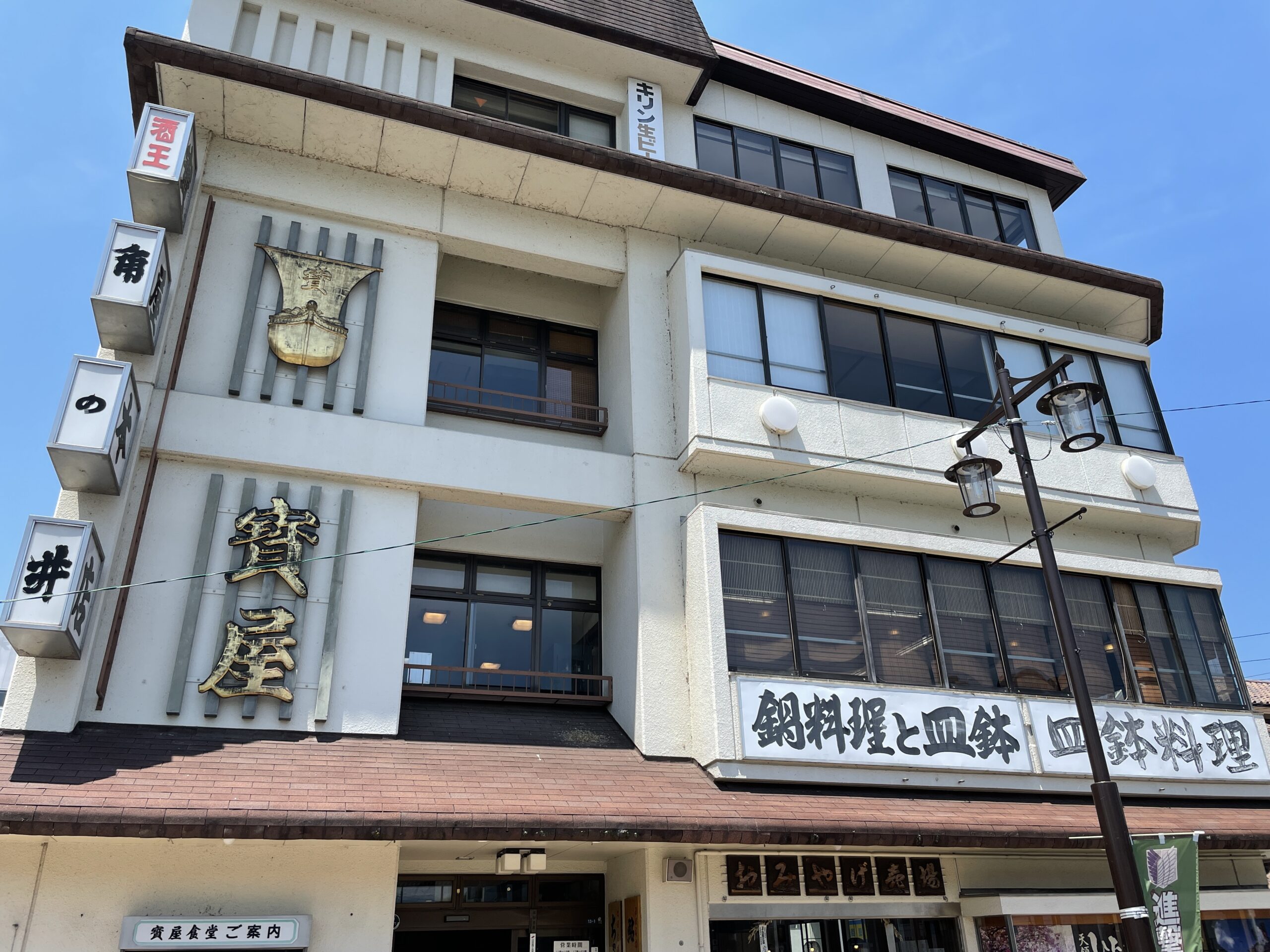 それも気になりつつ、日田駅前角に一際大きな4階建のビルがあって、そちらが昭和5年(1930年)創業の有名な食堂、寶屋(たからや)本店。