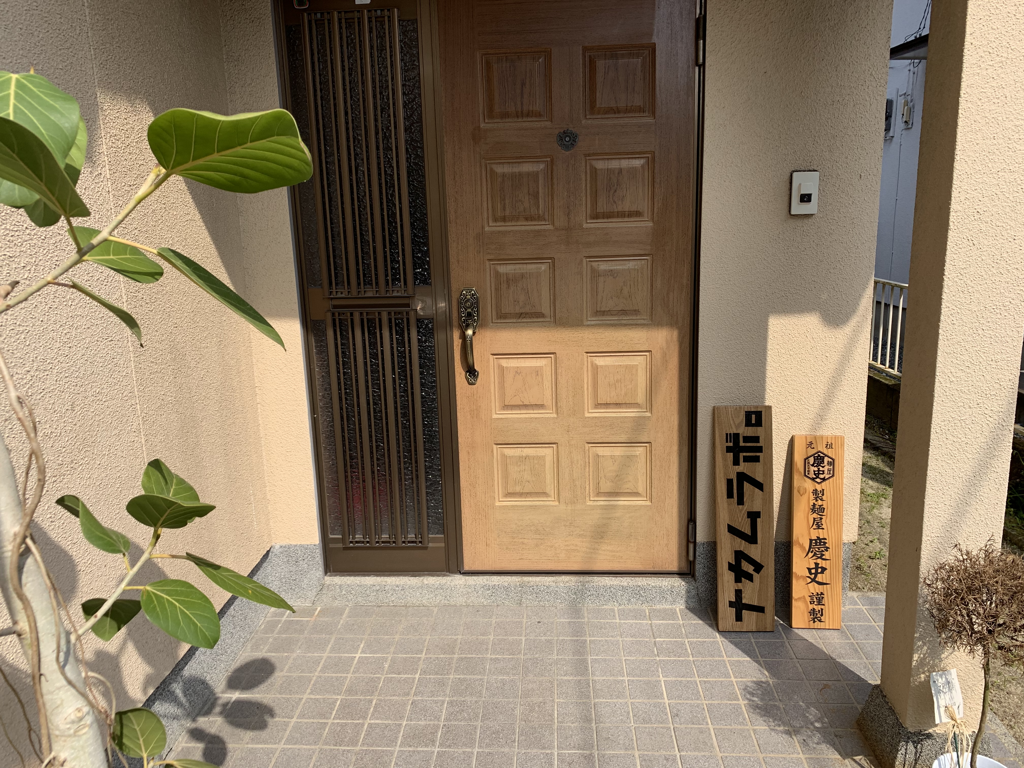 以前伺った時と違い、駐車場にお店の名前が書いた木札が置いてあったり、お店の入口にナカムラボとカタカナで表記した看板と製麺屋慶史の看板が置いてあったりと、ちょっとわかりやすくなってます(^-^)
