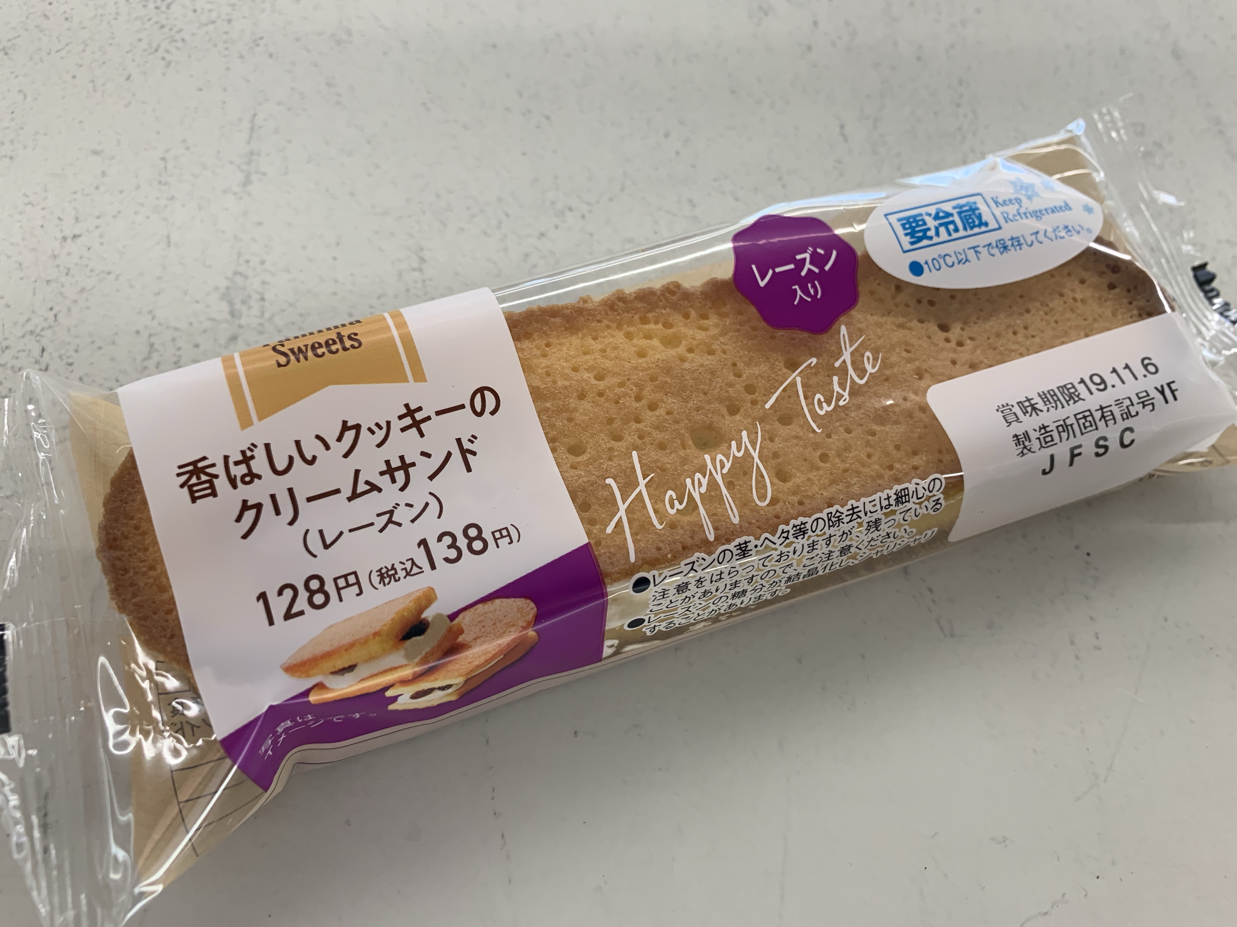 前にも投稿してますけど、最近のお気に入りの一つ、香ばしいクッキーのクリームサンド(レーズン)