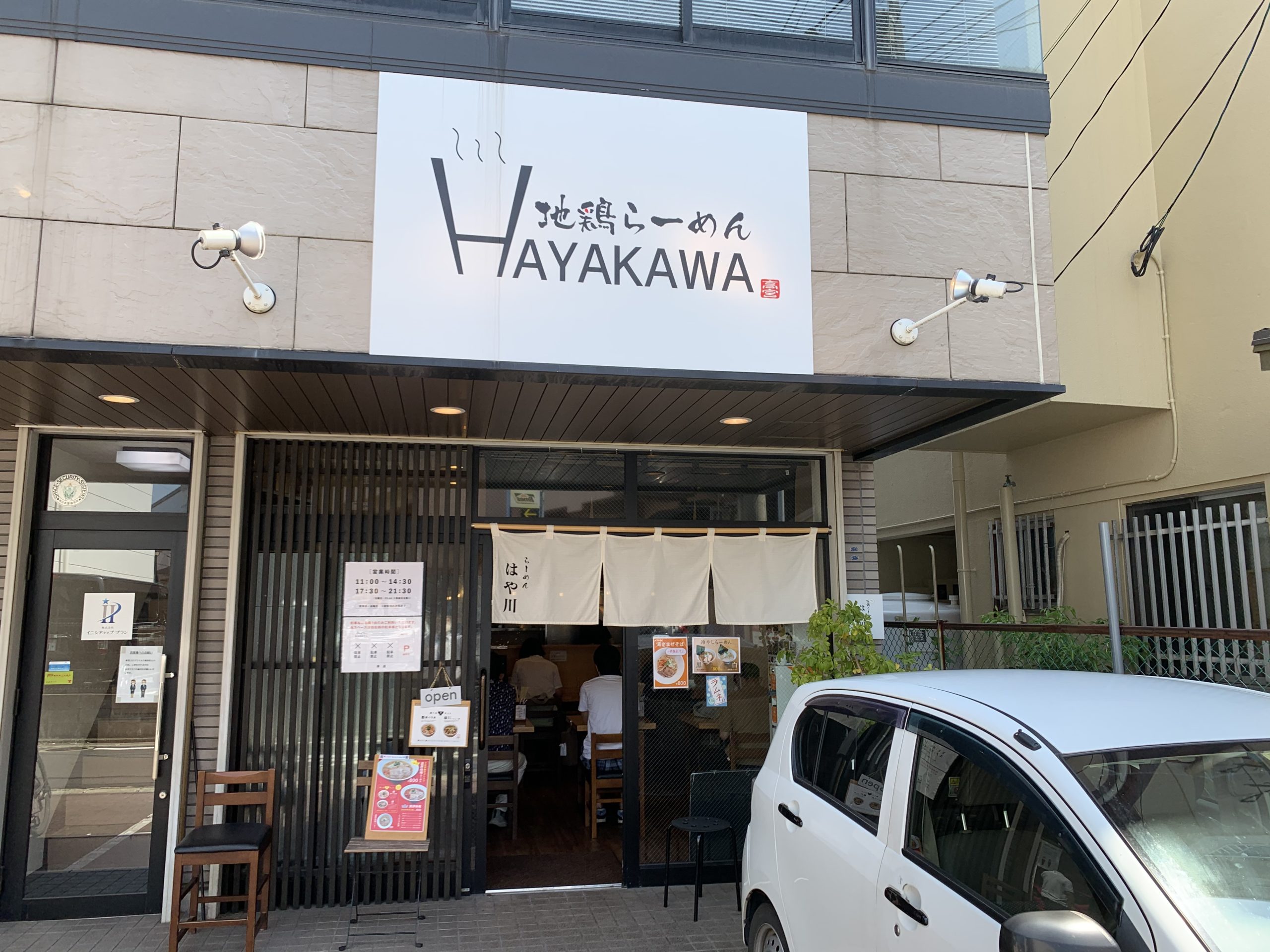 福岡で冷やしラーメンと言えばラーメン屋游、昨年は冷やしラーメンの黒と白を出されてて、今年は大変だったからと冷やしの白のみにされていましたけど、会社からも近い、高宮駅近くの地鶏ラーメンHAYAKAWAも今年冷やしらーめん黒と白を出されていると聞きつけて、これは一度食べてみなければと先日伺ってきました。
