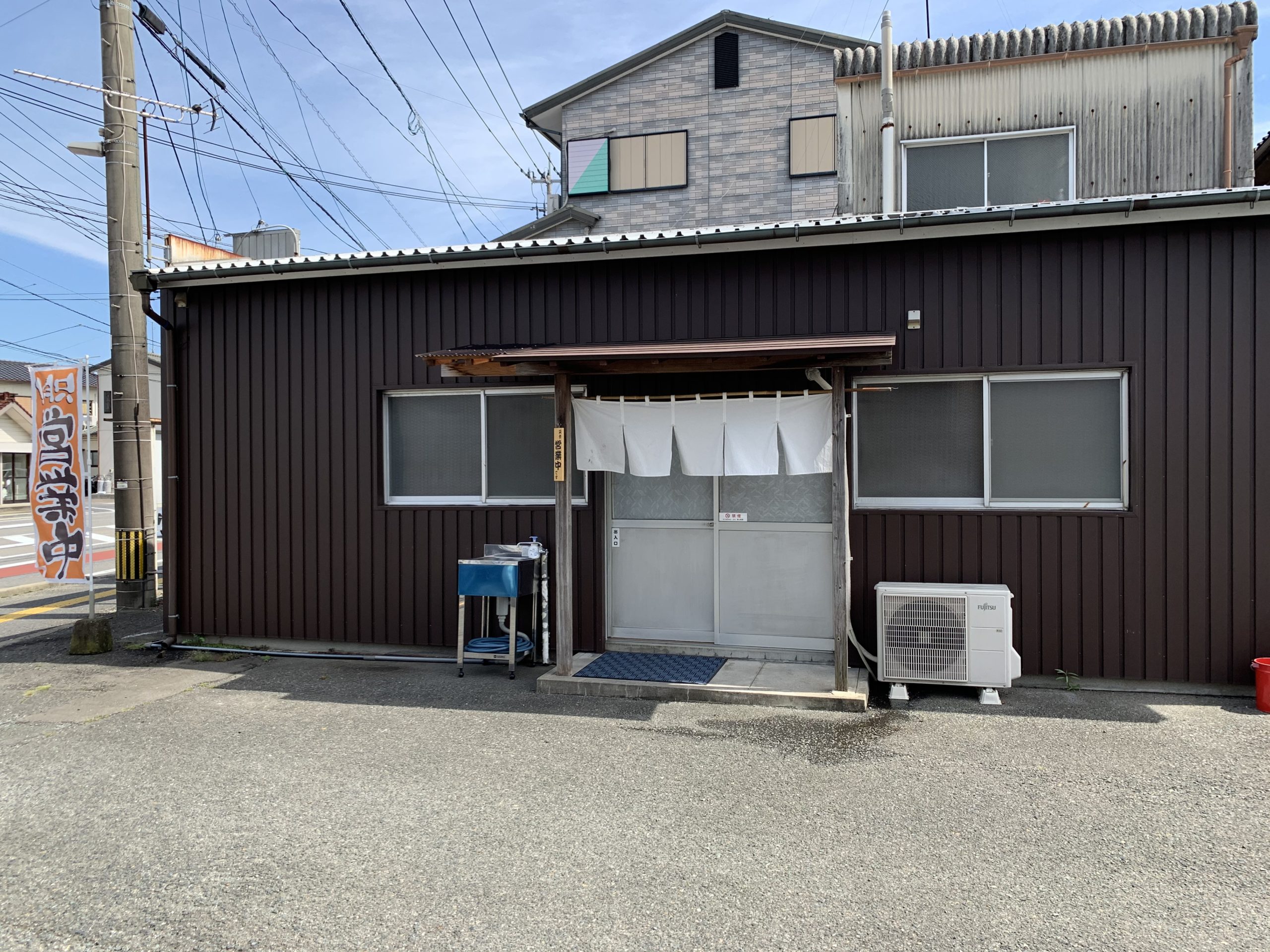 営業中のノボリが目に付いたのでそのまま左折して敷地内に入ると、左手前に平屋の目立たない建物、その奥に駐車場があります。