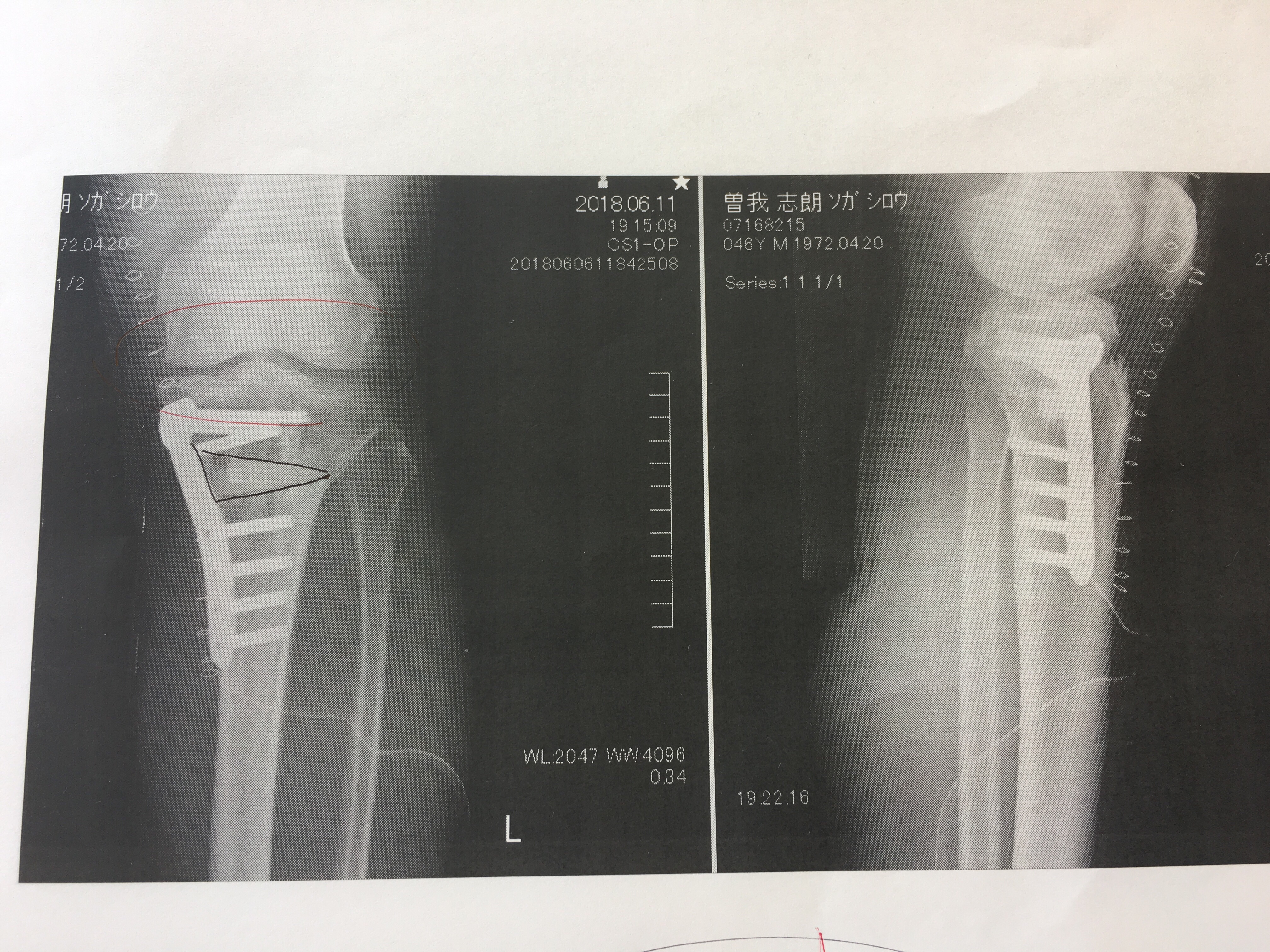 最終的には、そのプレートを1年後に除去し、同時にゆるんでいる靭帯を再建して、今回の手術は完了だとのこと。