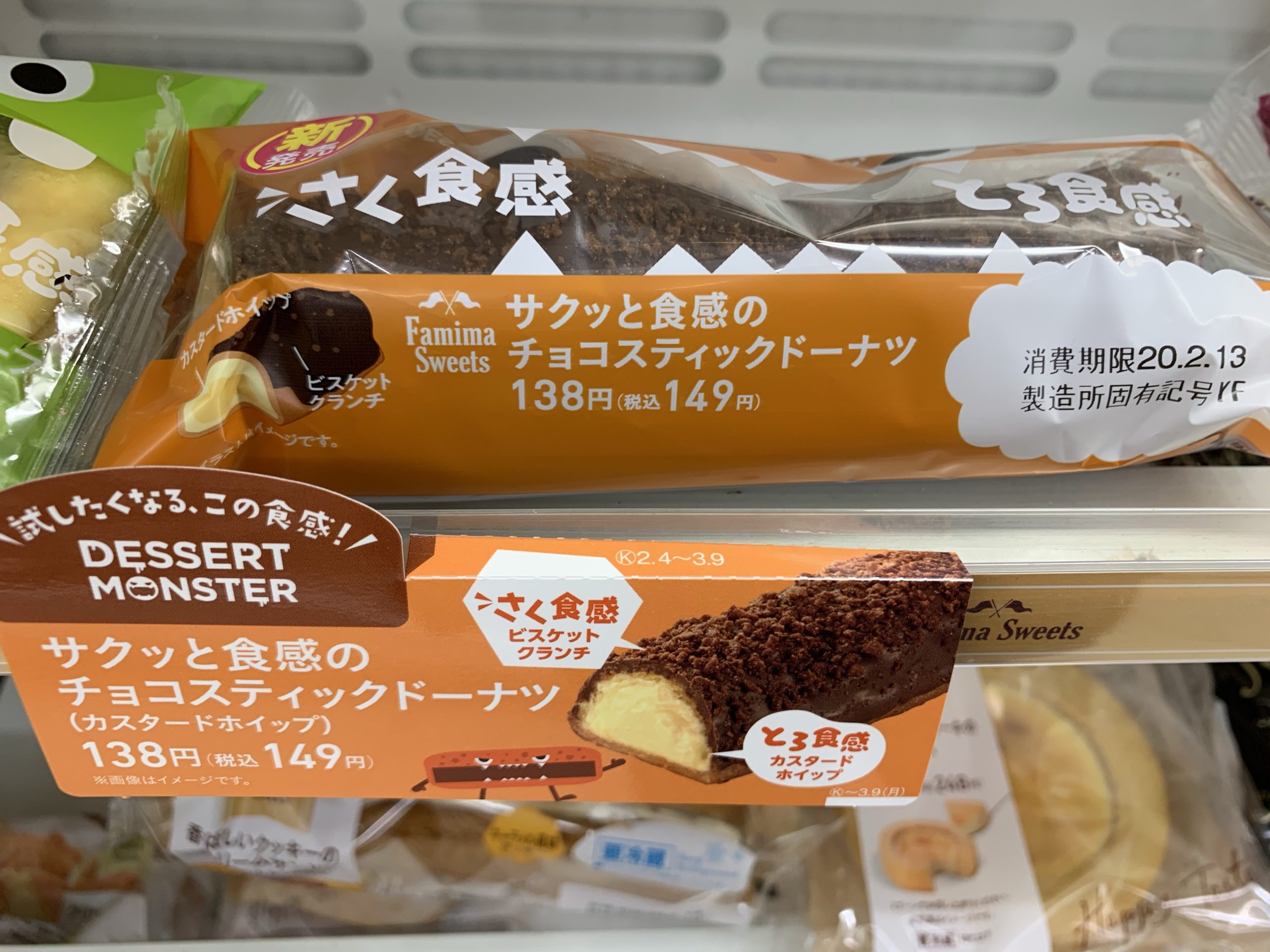 先日、ファミマに伺った際に、サクッと食感のチョコスティックドーナツという新商品を発見。