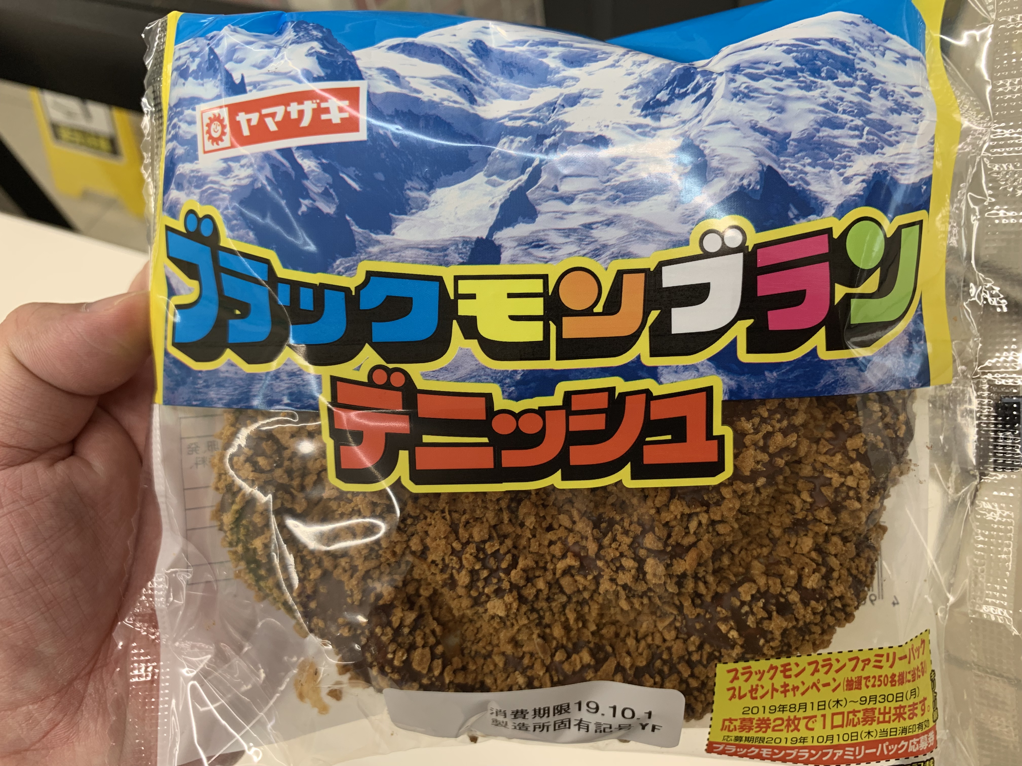 で、目薬など買うものをカゴに入れて店内をブラブラと見ていたら、パンコーナーにブラックモンブランデニッシュという商品が!