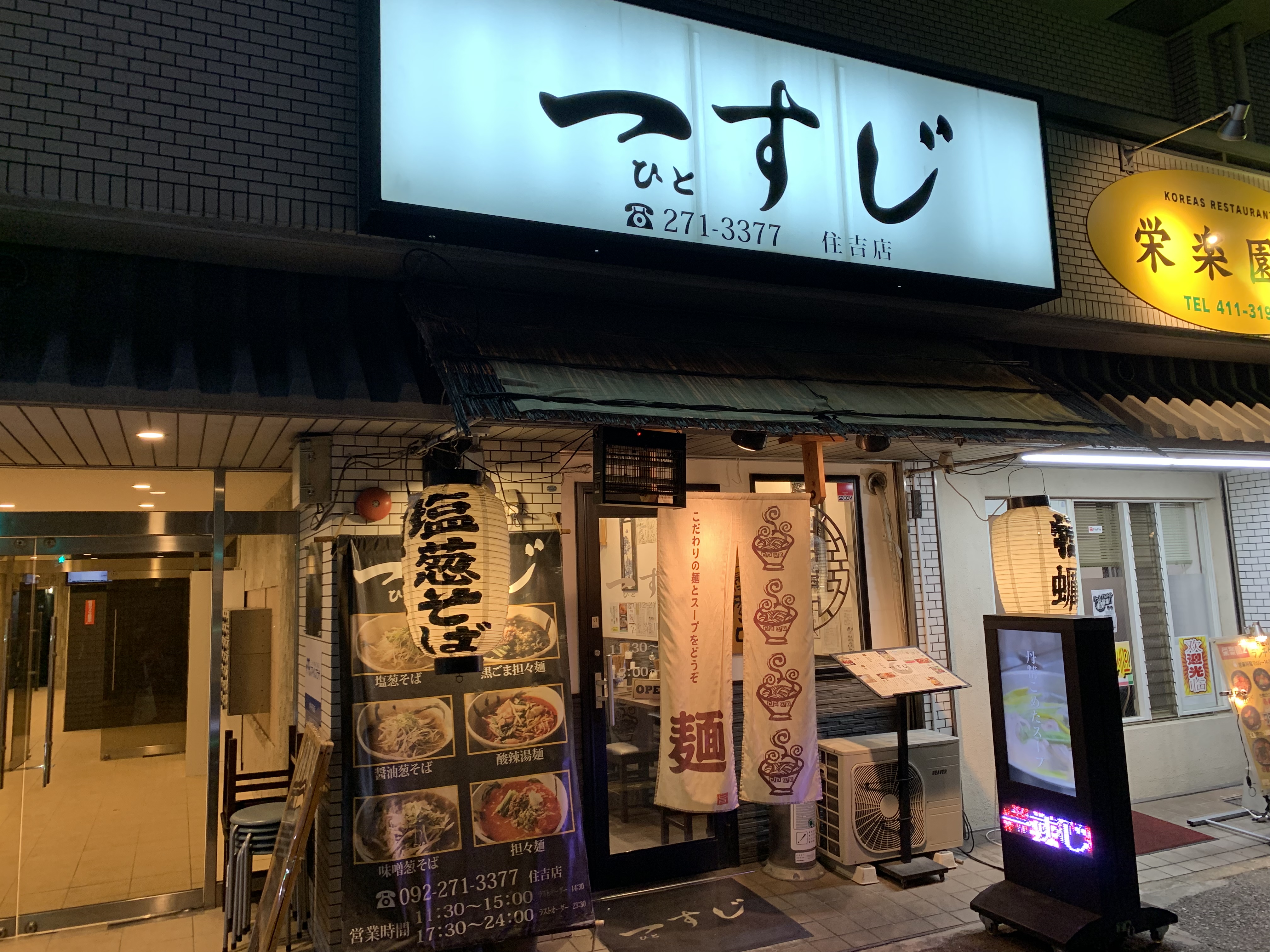先日、麺テロリストまろさんの来福に合わせて飲み会を企画しまして、その前に参加者の1人を迎えに行ったんですが、少し時間が早かったのと小腹が空いたので、飲み会が行われる予定のサダカネと同じ建物にある一すじ住吉店で一麺啜ることに。