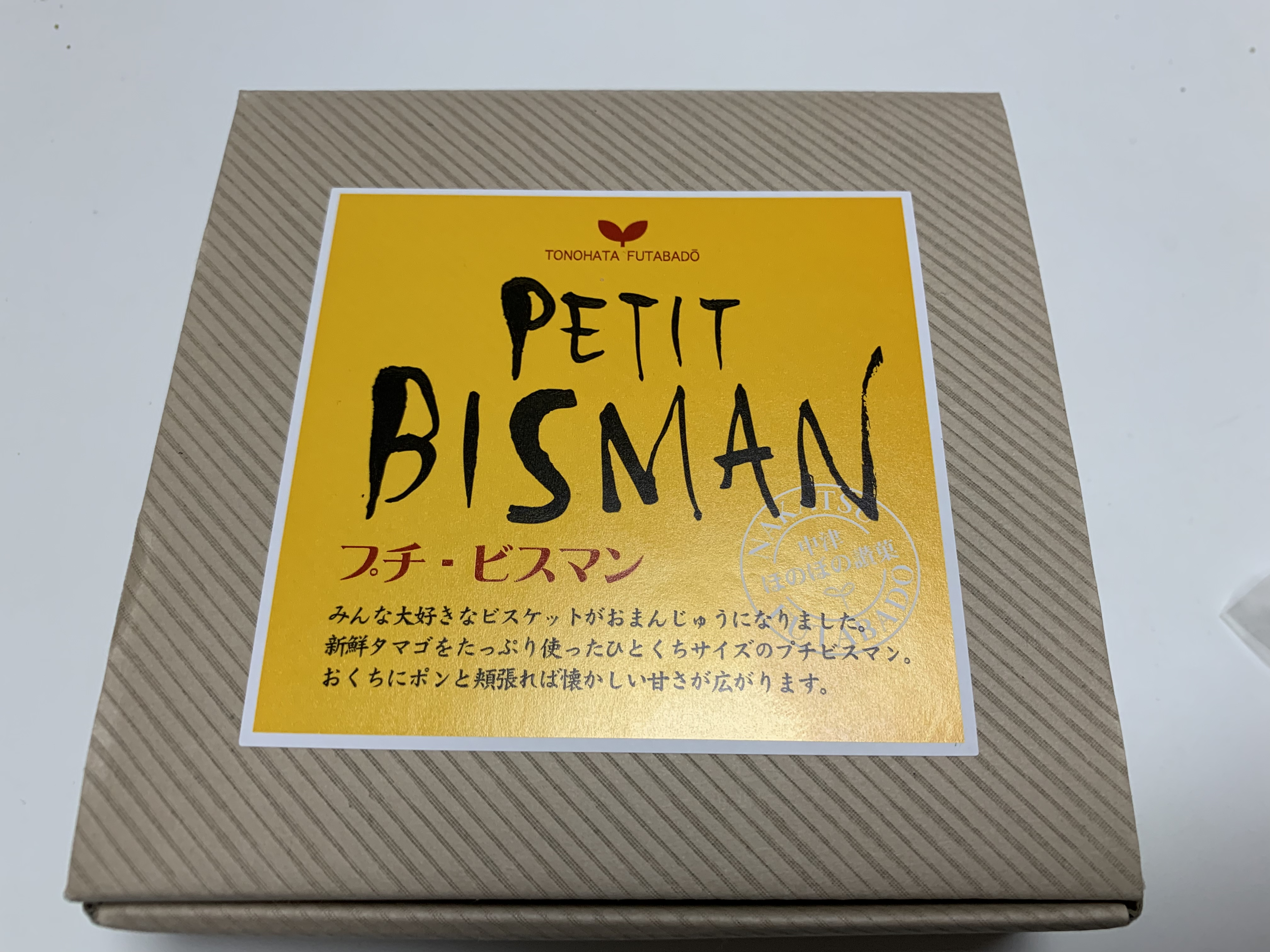 ビスマンはビスマン本舗殿畑双葉堂というお店が作られているビスケット風饅頭、というものだそうで、ビスケット生地に黄身餡を入れた洋風饅頭。