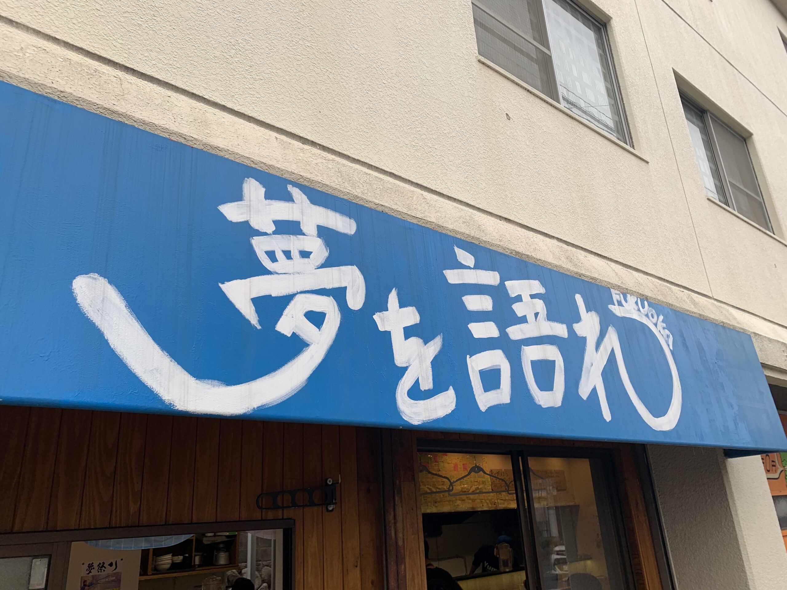 その通り沿いに昨年3月にオープンされた夢を語れ福岡店、現地に着いてみると長蛇の列にビビります。