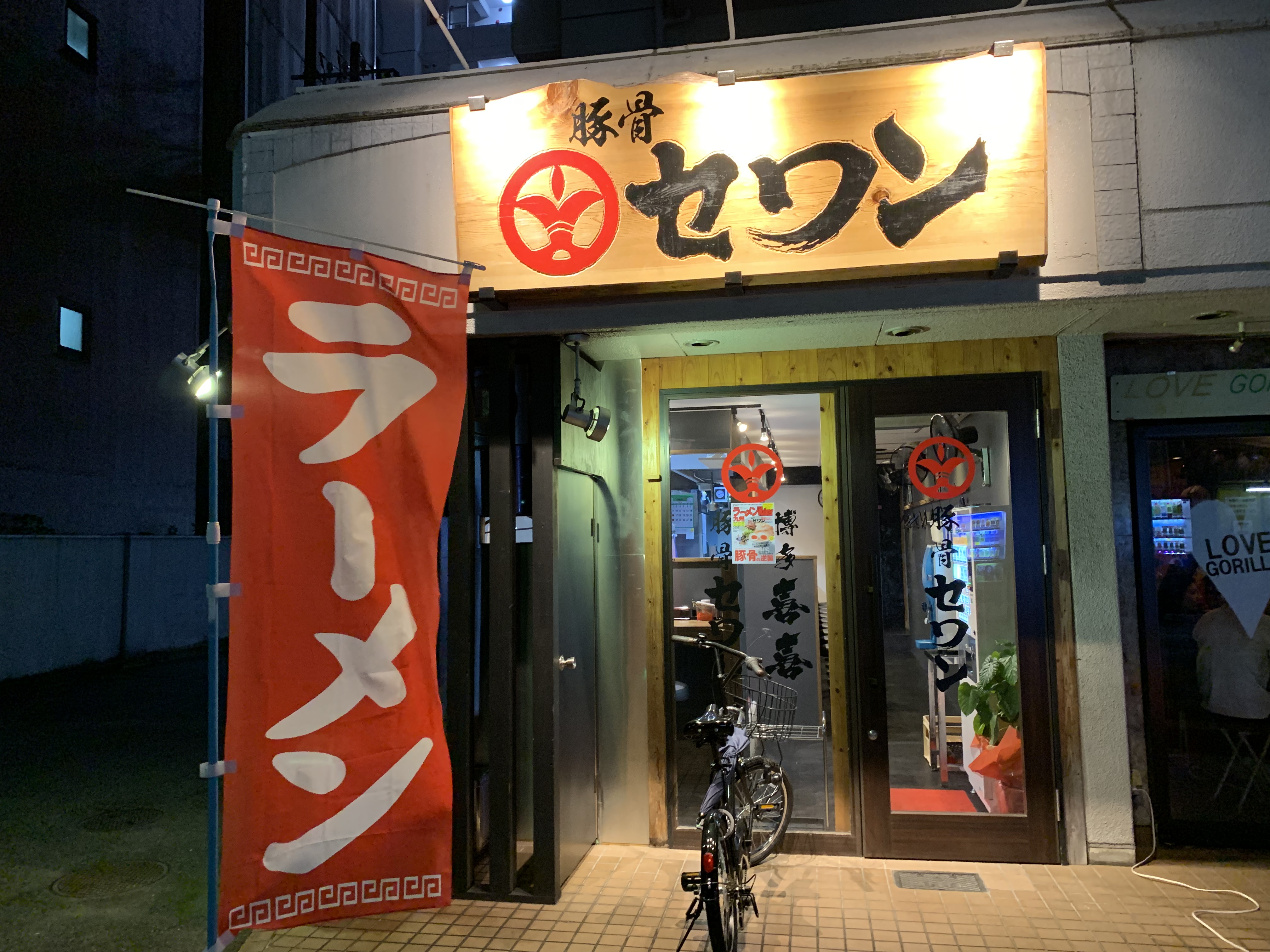 ドアの前には豚骨セワンと博多喜喜と書いてあり、後で調べてみたら鹿児島で二店舗営業している豚骨ラーメンのお店で、どうやらそちらの系列店ってことみたいですね。