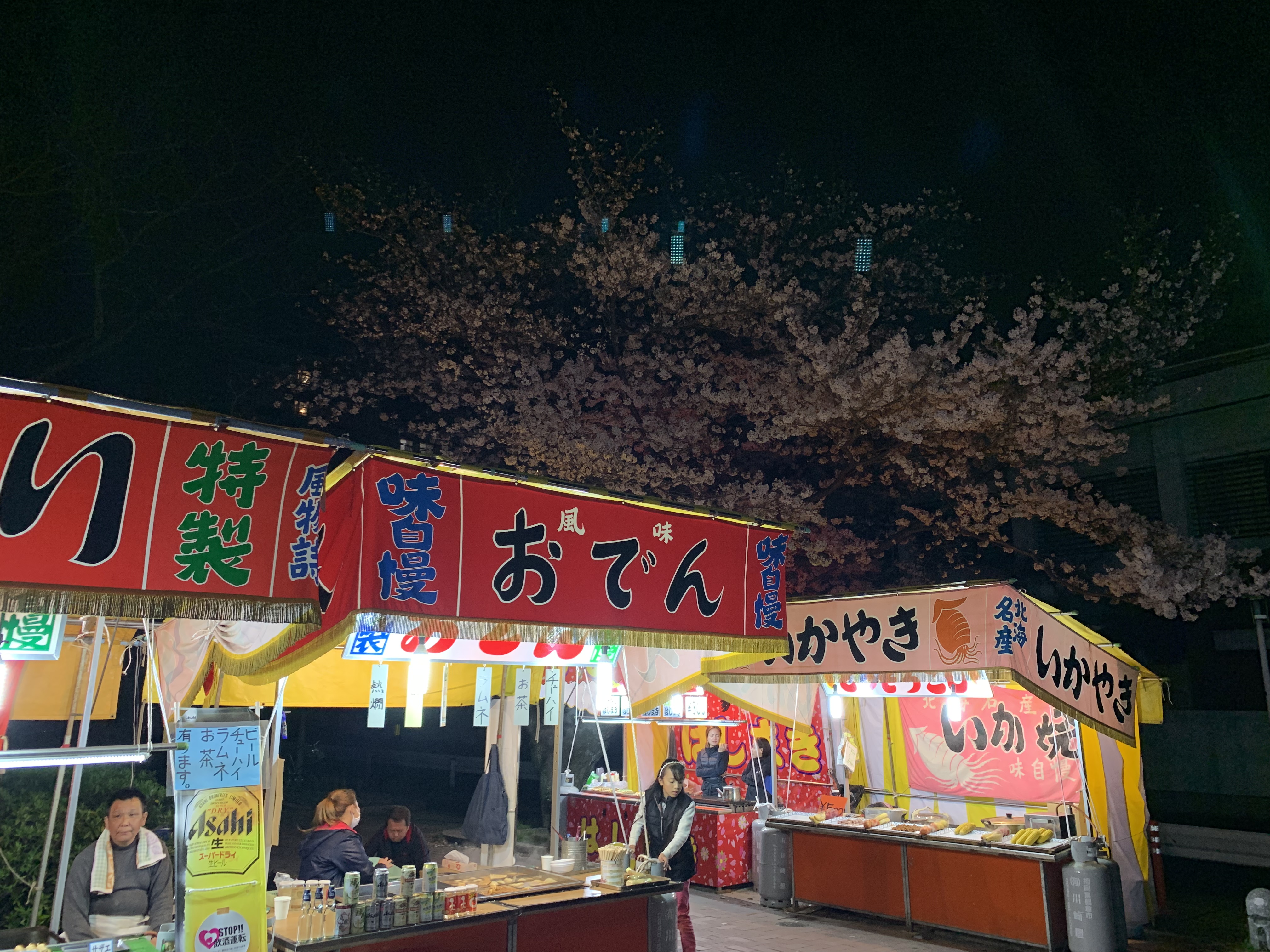 花見の時期は屋台が出ている、とは言えこの時間だとやってないだろうと思ったら、花見客がまだまだいるからか、普通に営業されています。