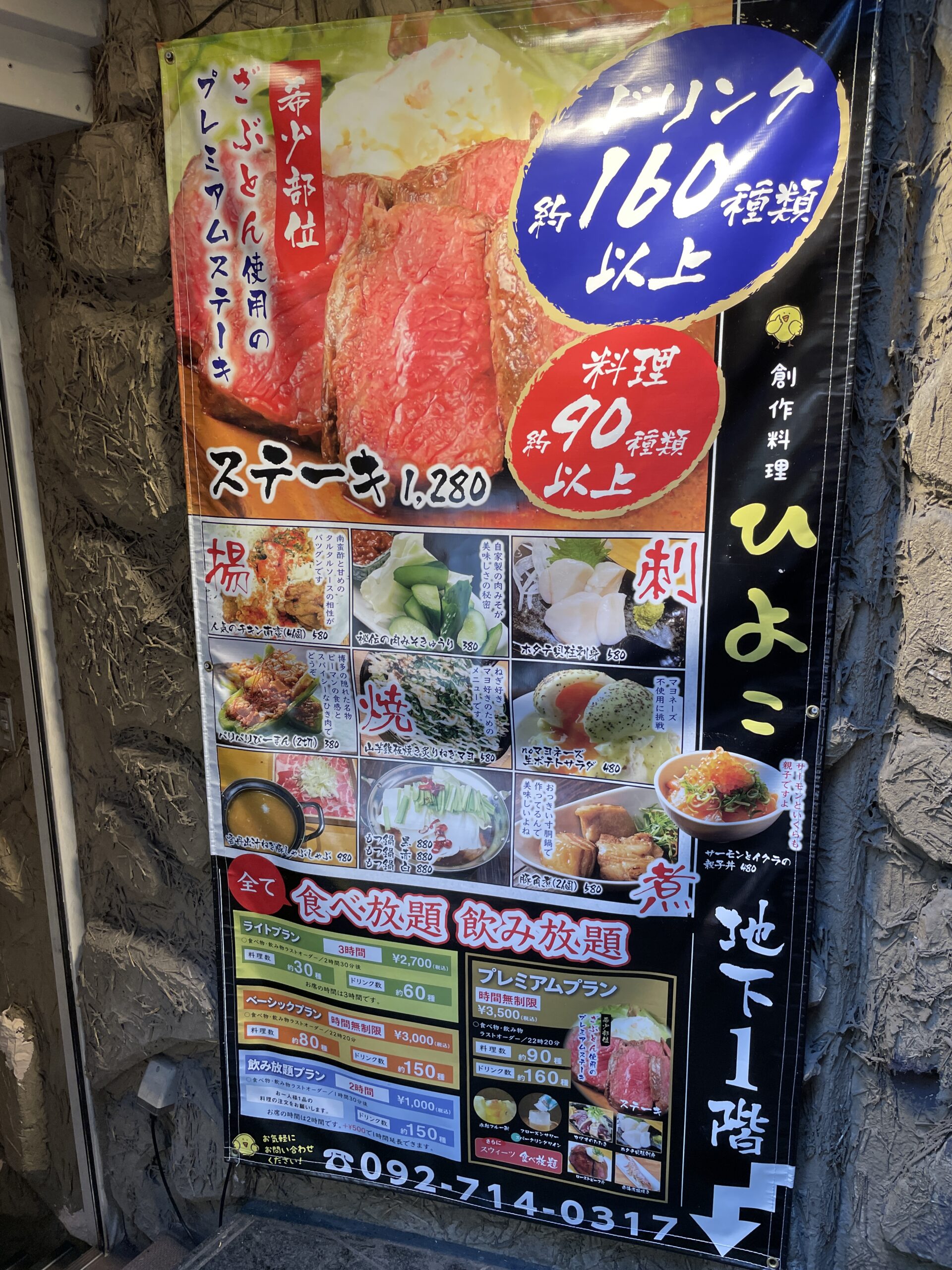 新天町入口地下の創作料理ひよこ初訪問[全215種時間無制限食べ飲み放題]