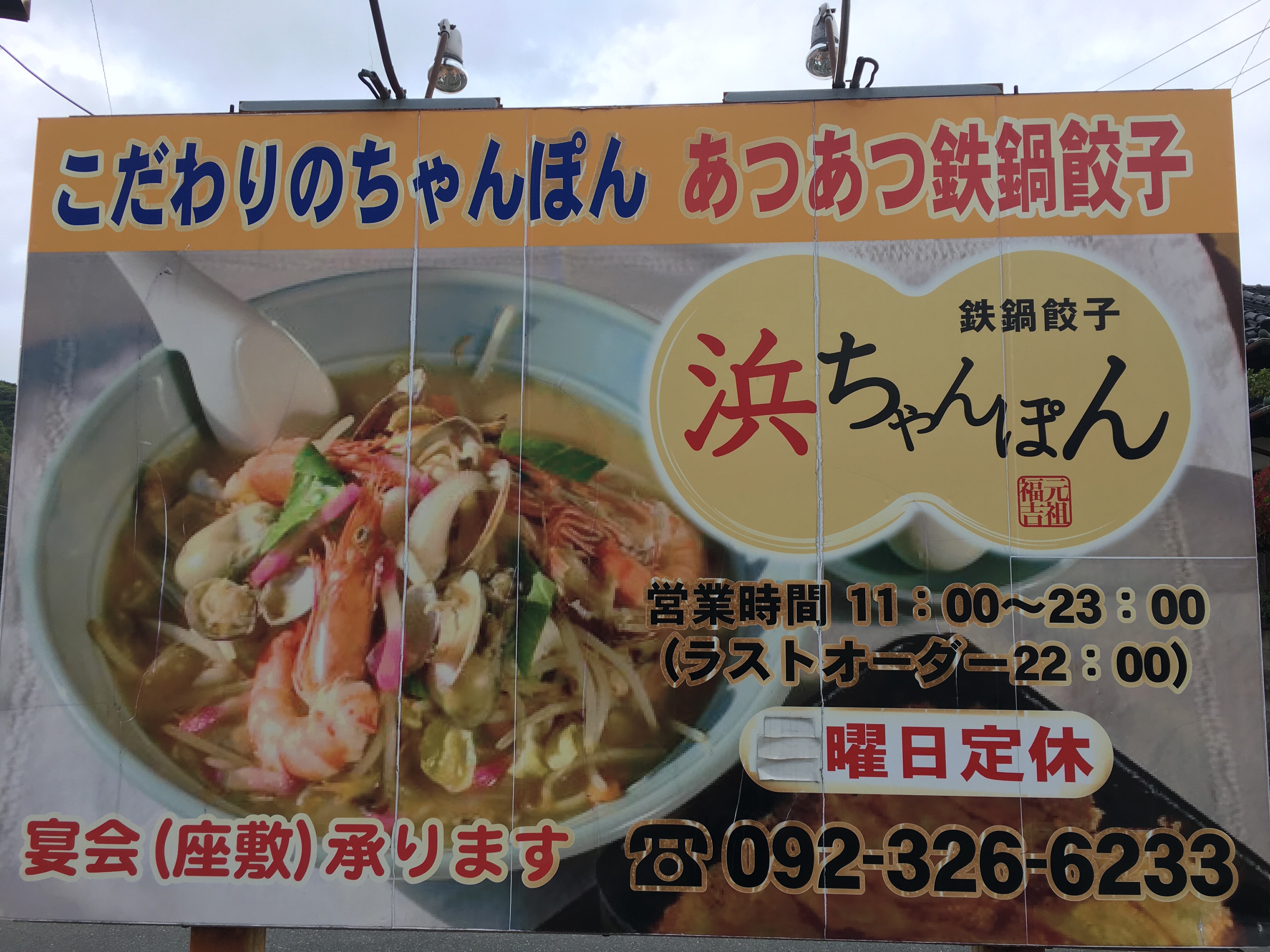 #浜ちゃんぽん #本店 #糸島市吉井 #JR筑肥線福吉駅 #唐津街道 #飲食店跡 #4月30日閉店 #海鮮ちゃんぽん #鉄鍋餃子 #豚骨ラーメン #豚骨スープ #チャーハン #唐揚げ #夜は居酒屋メニューあり #駐車場あり