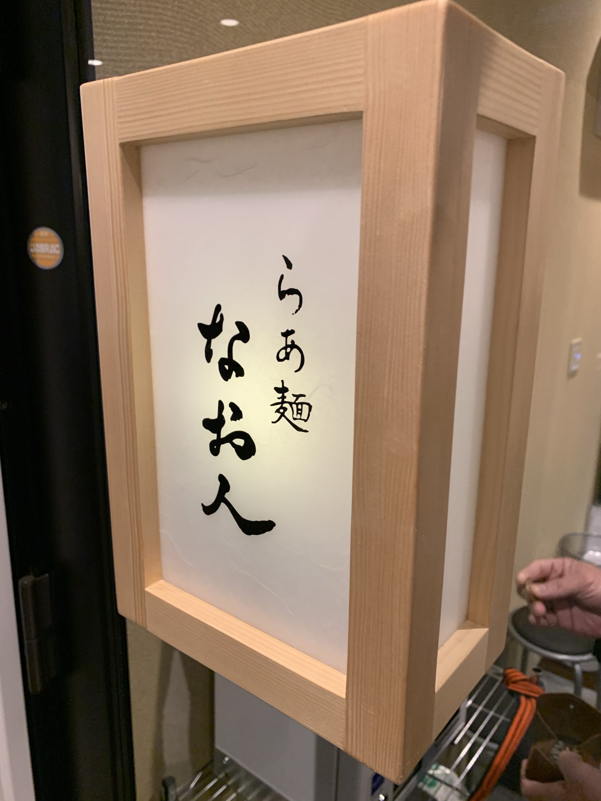 ちょっと離れた場所に車を停めて、テクテクと歩いて建物の前に着くと、外部看板にらぁ麺なお人の看板があります。