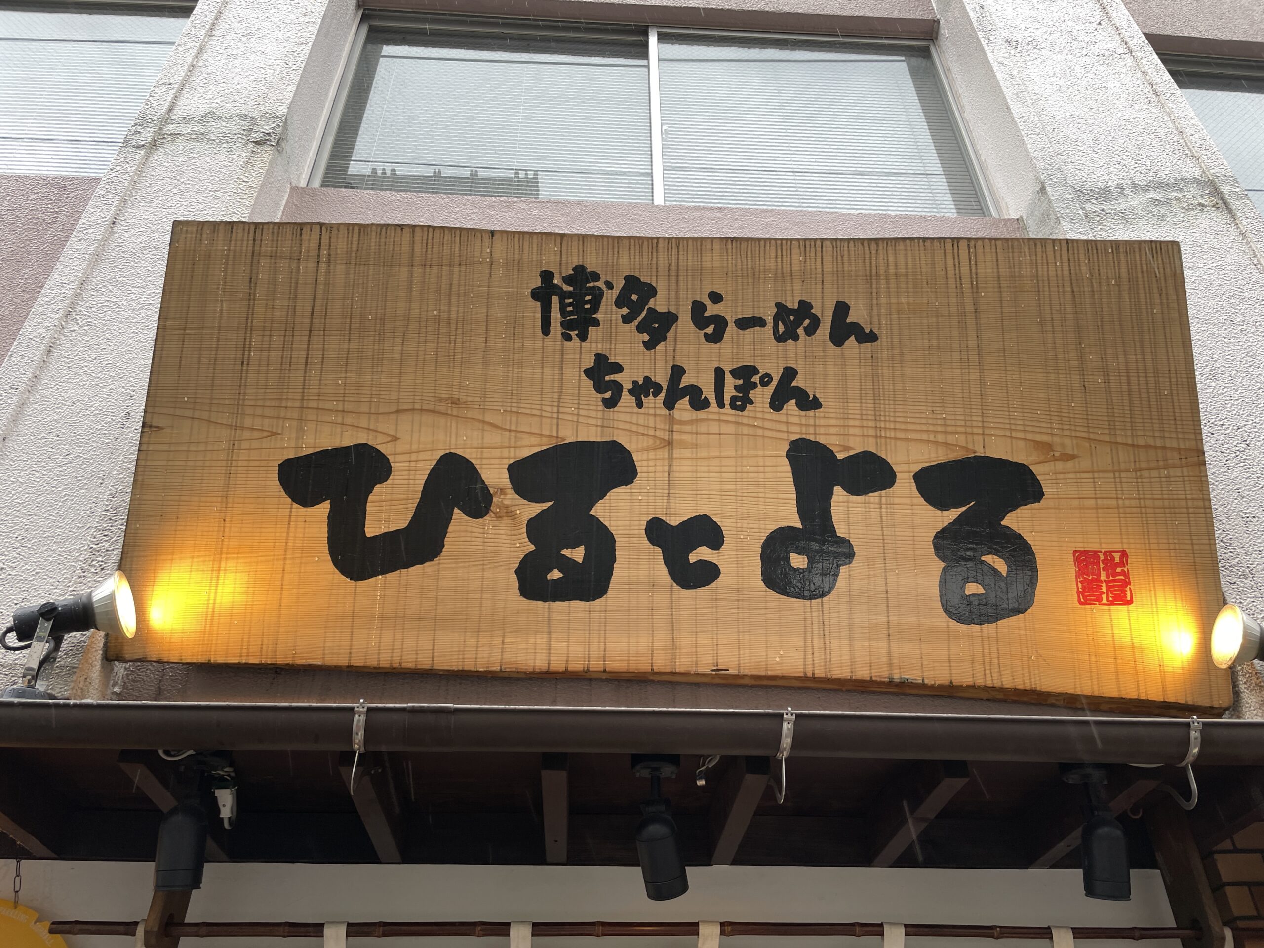 温かみと味のある書体で博多らーめんちゃんぽん ひるとよる と書かれています。