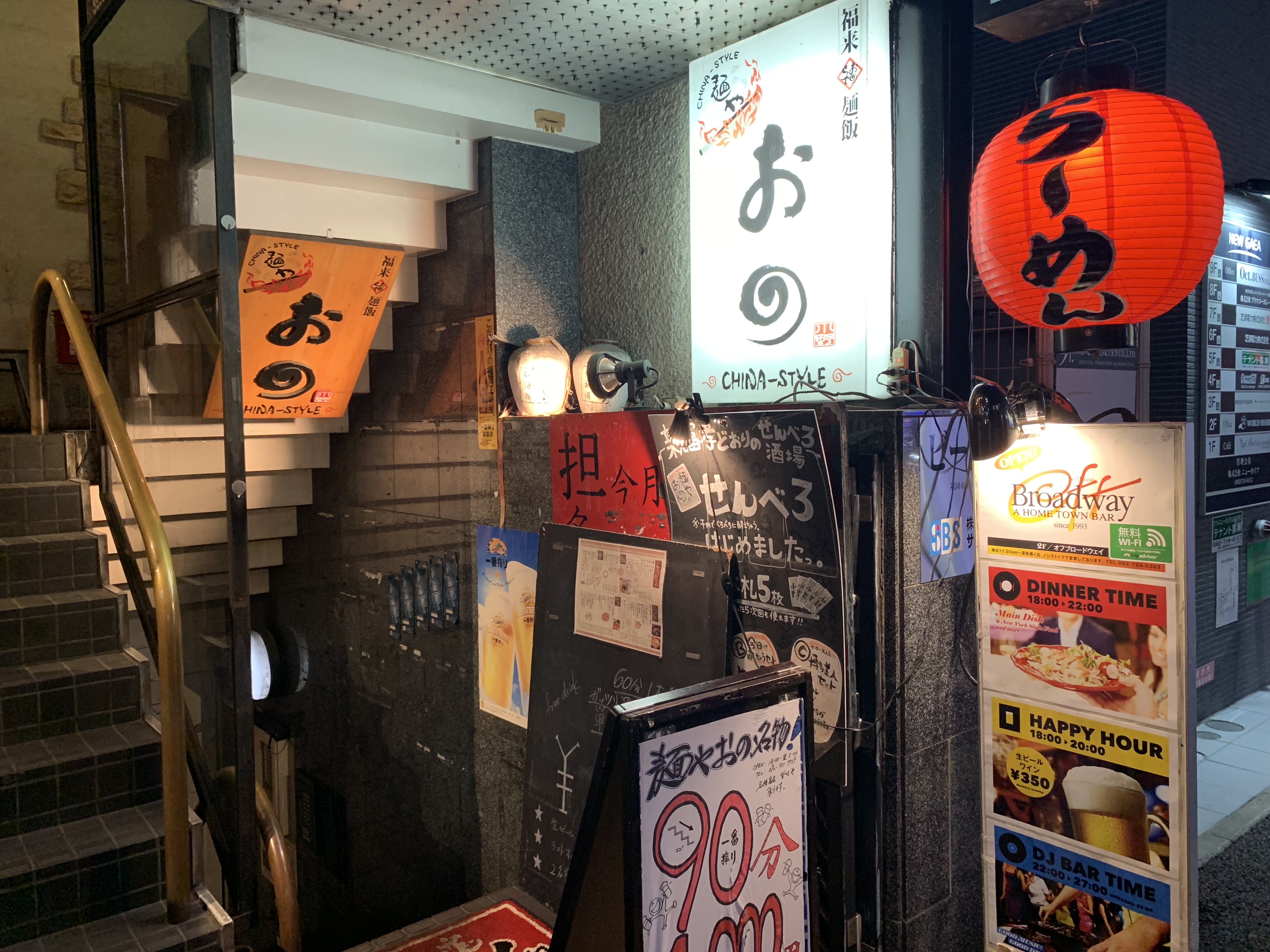 やっぱりステーキを後にして、さてこれからどこに行くか考えていたら、やっぱりステーキの地下にある麺や おの、こちらの90分飲み放題1,000円の看板が目に付きまして。