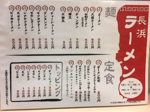 メニューはラーメンが基本でやきめし、餃子、ワンタンにもやし炒めに豚キムチ等。