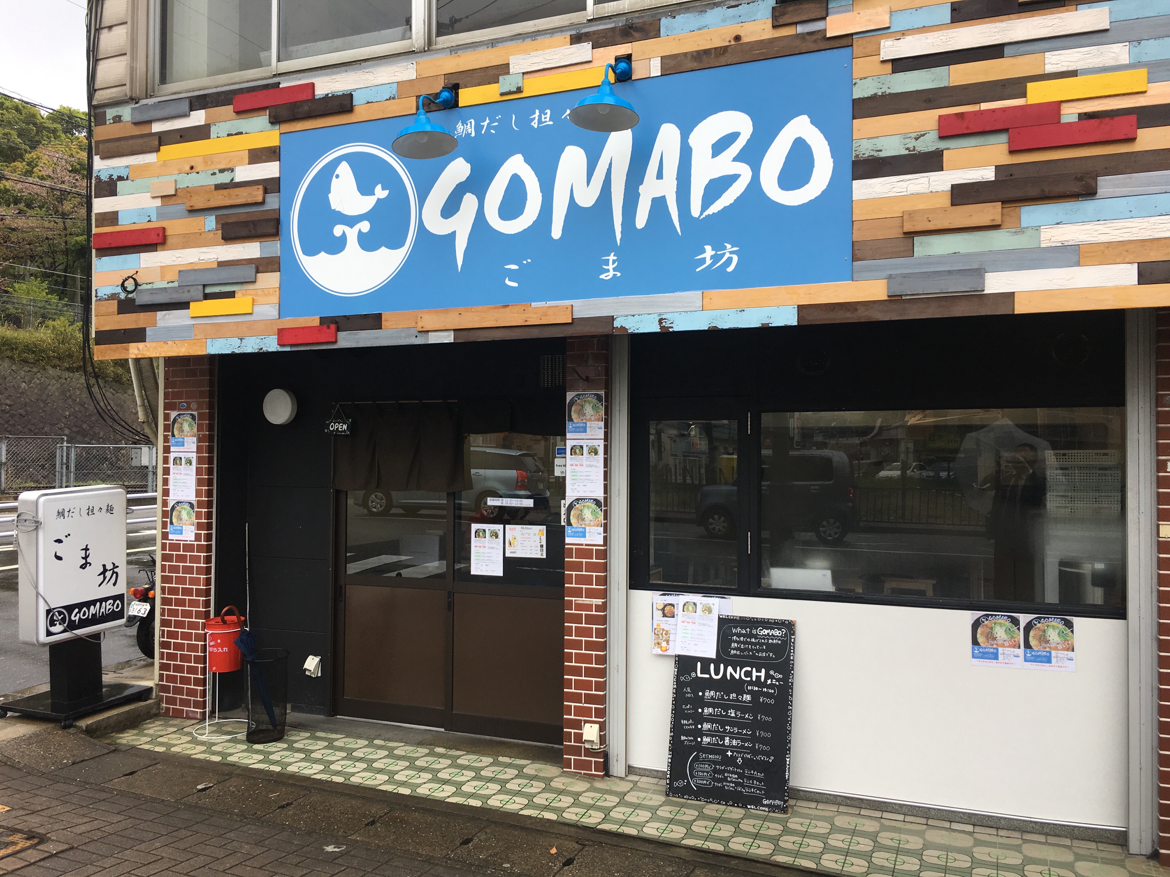 西鉄香椎宮前駅近く、ちょうど角地の交通量の多い箇所にある青色の看板が目印の、鯛だし担々麺GOMABOです。