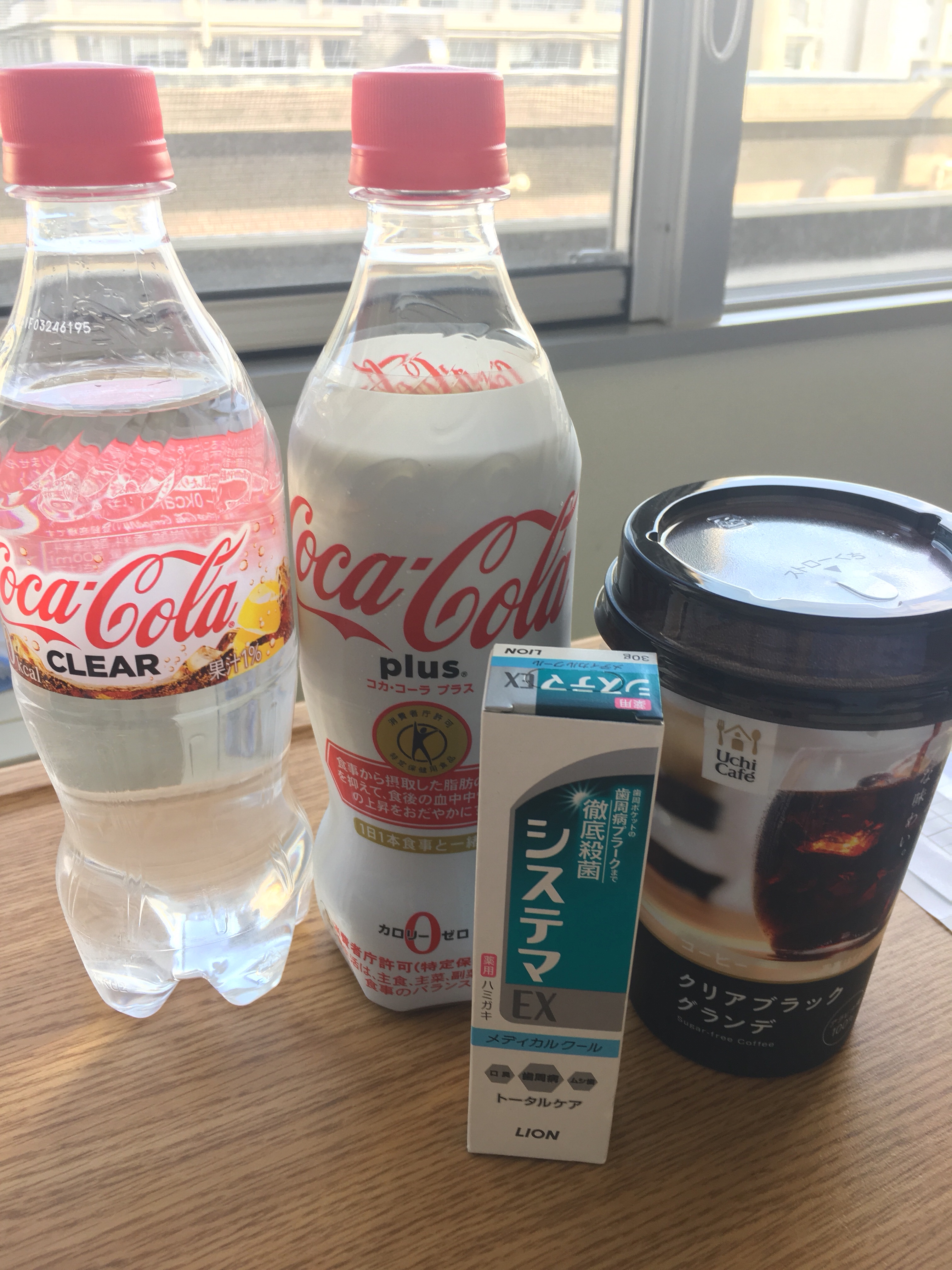 とりあえず無くなりそうな歯磨き、それとコーヒーに、最近発売されて気になっていたコカコーラクリアに特保コーラを購入。