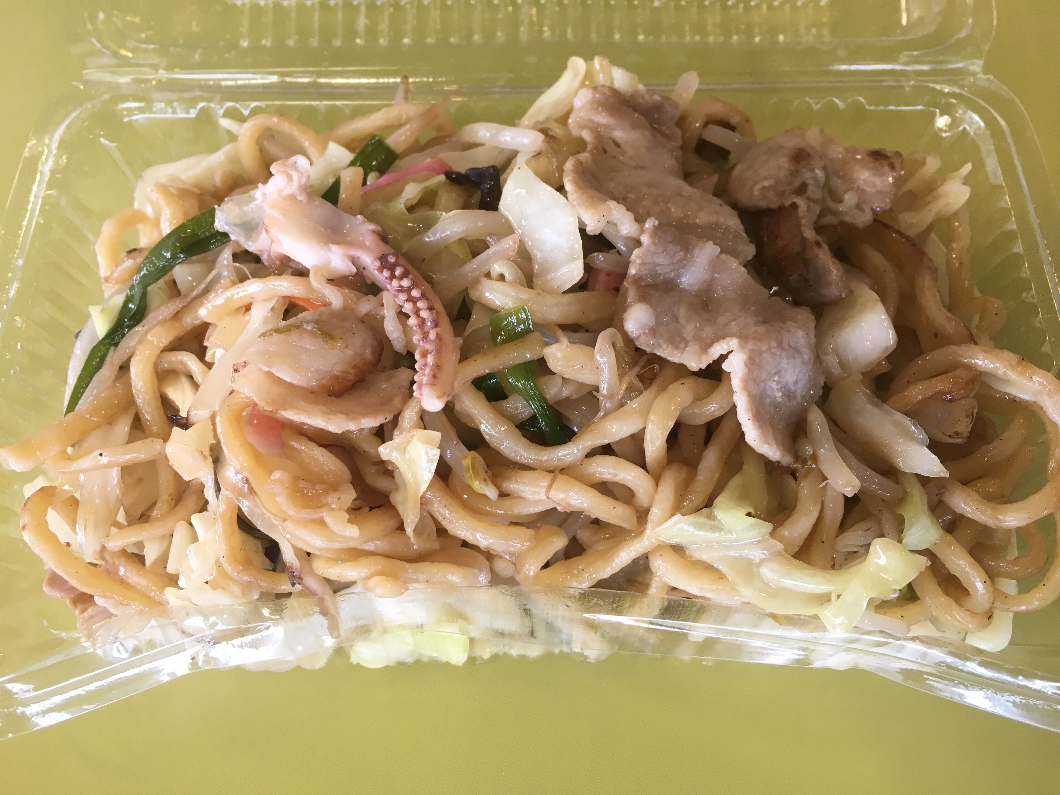 少し冷めてましたが、まだ温かい皿うどん、麺もコシがあり、そこにたっぷりの野菜や豚肉、イカなどの具材と、美味しく頂きました(*^-^*)