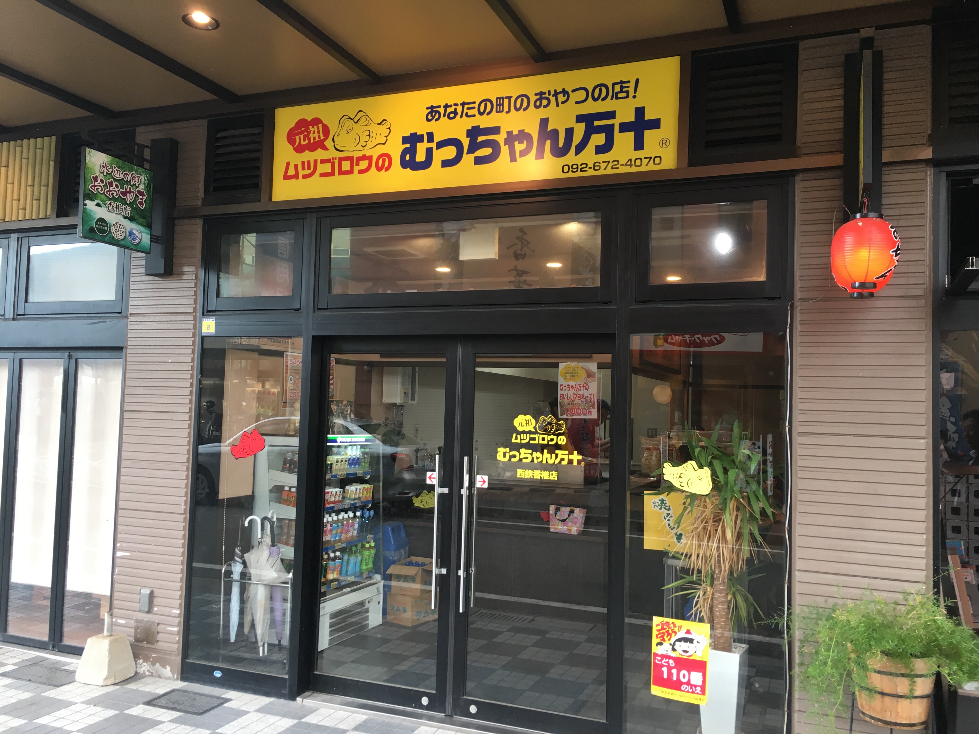 二人拾って向かいまして、ちょっとだけ早く着いてしまい、周辺を散策していたらむっちゃん万十西鉄香椎店の前に。